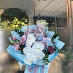 Leucadendron - 5 pcs Eucalyptus - 5 pcs Hydrangea - 3 pcs Lisianthus - 6 pcs cymbidium - 6 pcs peony import pink - 5 pcs cymbidium mini - 12 pcs