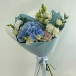 Hydrangea - 1 pcs peach rose - 2 pcs white lisianthus - 5 pcs
