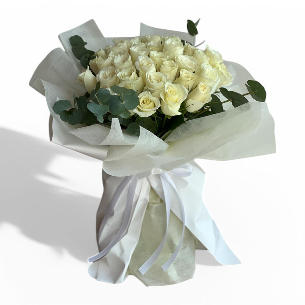 A luxurious bouquet of premium white roses, chosen for moments that deserve purity, commitment, and elegance. Ideal for Valentine’s Day, anniversaries, and meaningful expressions of love.