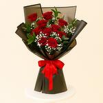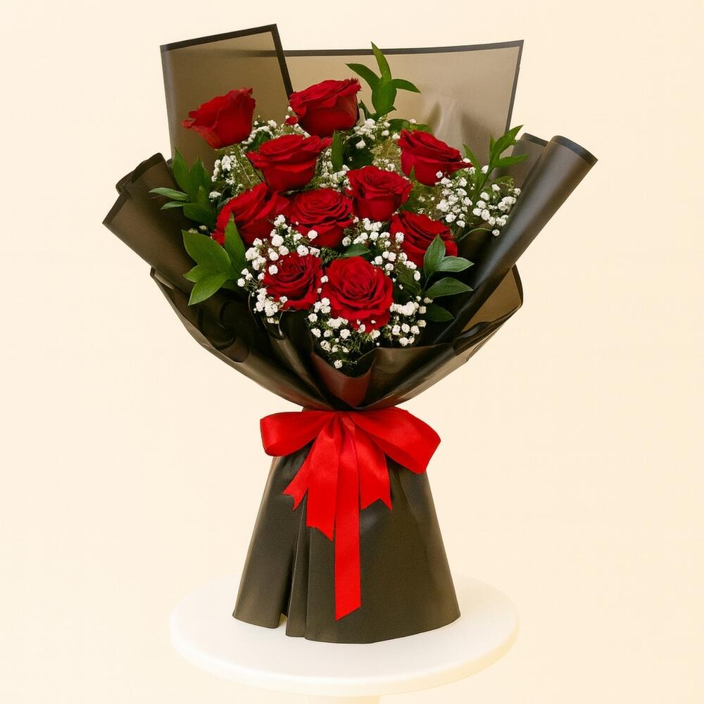 Red rose - 10 pcs Ruscus - 7 pcs gypsum - 4 pcs