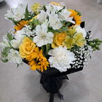 A wonderful bouquet of mix light colours in black wrapping