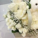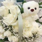 Gypsophila - 3 pcs Teddy bear - 1 pcs butterfly - 1 pcs roses - 10 pcs spray roses - 4 pcs