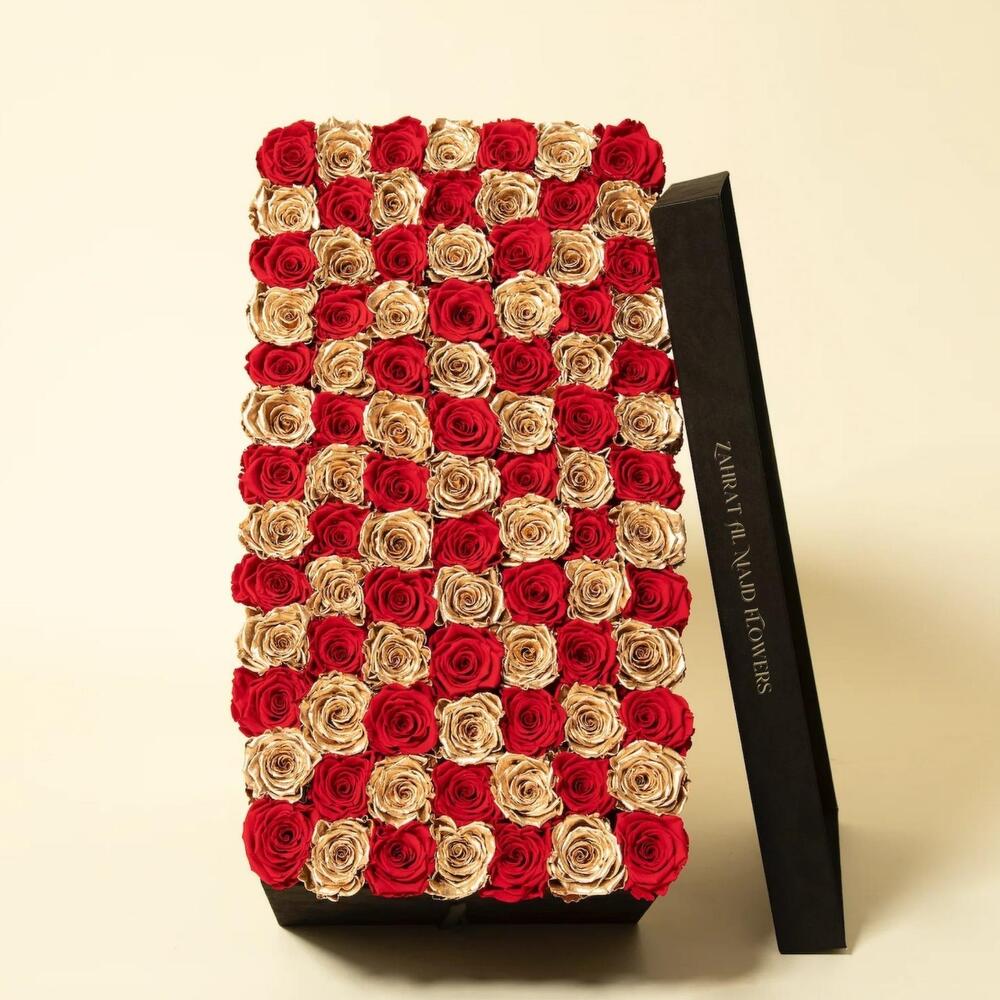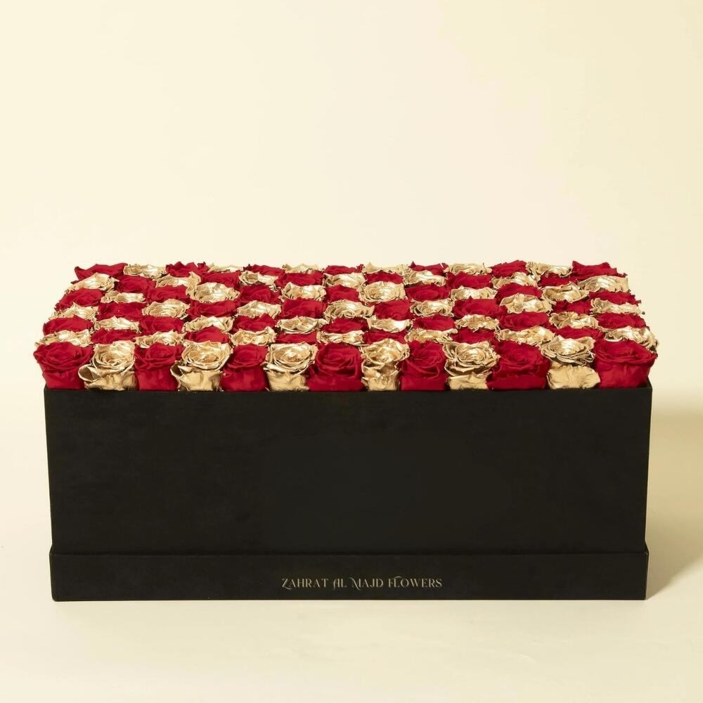 Red rose - 51 pcs gold rose - 50 pcs luxe box - 1 pcs