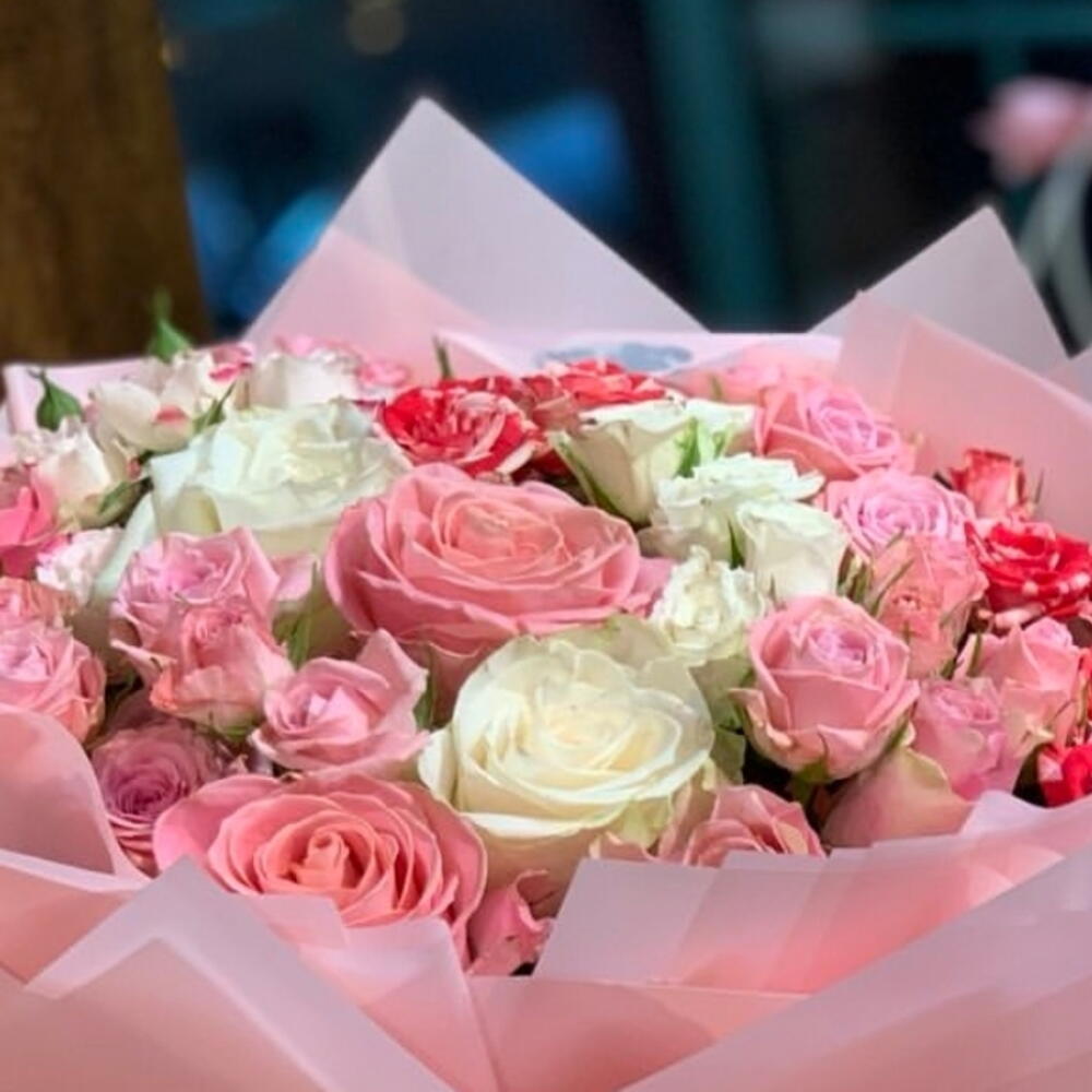 Pink rose - 6 pcs White rose - 5 pcs pink spray roses - 80 pcs white spray roses bunch - 2 pcs