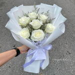 This beautiful white rose bouquet is thoughtfully arranged to create a calm and sophisticated expression. The fresh white roses stand out with their natural charm, while the minimal wrapping keeps the look clean and stylish. Ideal for birthdays, appreciation gifts, apologies, or moments when words are not enough, this bouquet delivers beauty in simplicity. 7 Fresh White Roses – Symbolizing purity, peace, and sincerity, carefully selected for a clean and elegant look 2 Premium Wrapping Sheets – Neatly layered to enhance the bouquet’s soft and refined appearance 1 Elegant Ribbon – Gently tied to complete the bouquet with a charming finish Width: 20 cm – Compact and well-balanced design Height: 35 cm – Perfect height for a graceful and presentable look